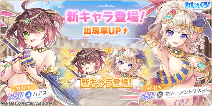 DMM GAMESの『れじぇくろ!~レジェンド・クローバー~』にて、マリー・アントワネットとハデスが砂漠の女王の姿で登場する新キャラピックアップガチャが2025年1月14日より開催されます。