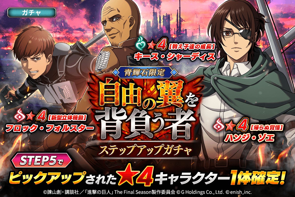 株式会社enishは、スマホゲーム『進撃の巨人Brave Order』において、2025年1月15日より新ガチャイベント「自由の翼を背負う者」を開催することを発表しました。