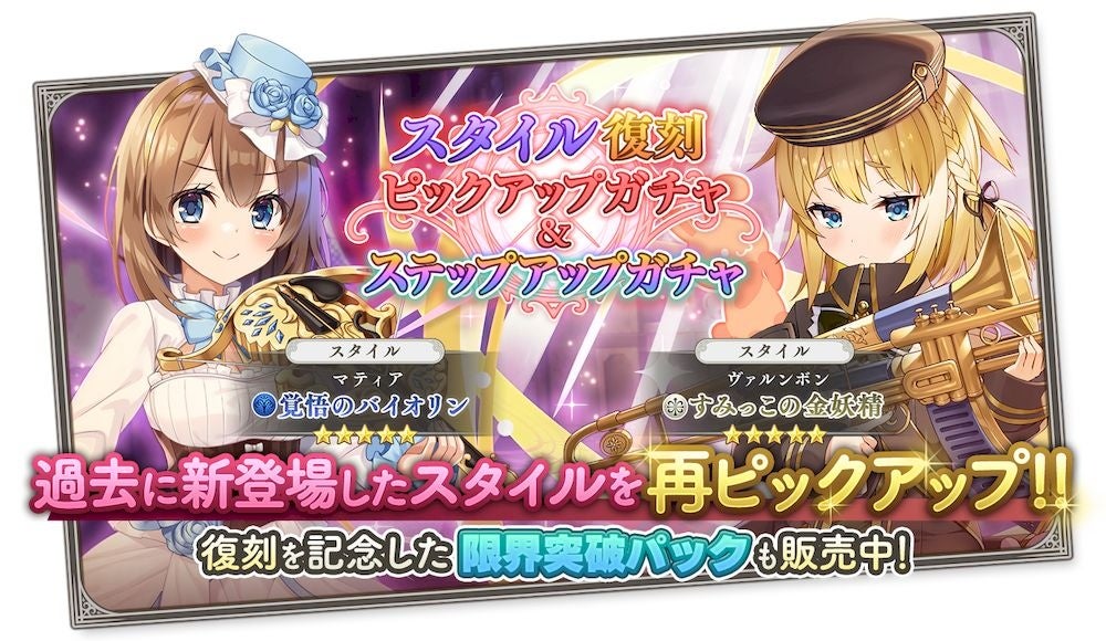 新キャラクターとしてエルガー★5スタイル【森の魔法使い】とパガニーニ★5スタイル【悪魔憑きの弦奏者】が登場するピックアップガチャに加え、過去コラボのキャラクターが復刻するガチャも開催されます。