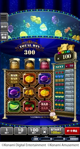 - パズルとスロットを融合した新感覚ゲームで、連鎖による高配当が魅力