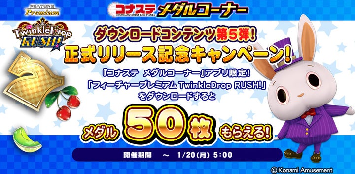 - 『コナステ メダルコーナー』に新ダウンロードコンテンツ「フィーチャープレミアム TwinkleDrop RUSH!」が登場