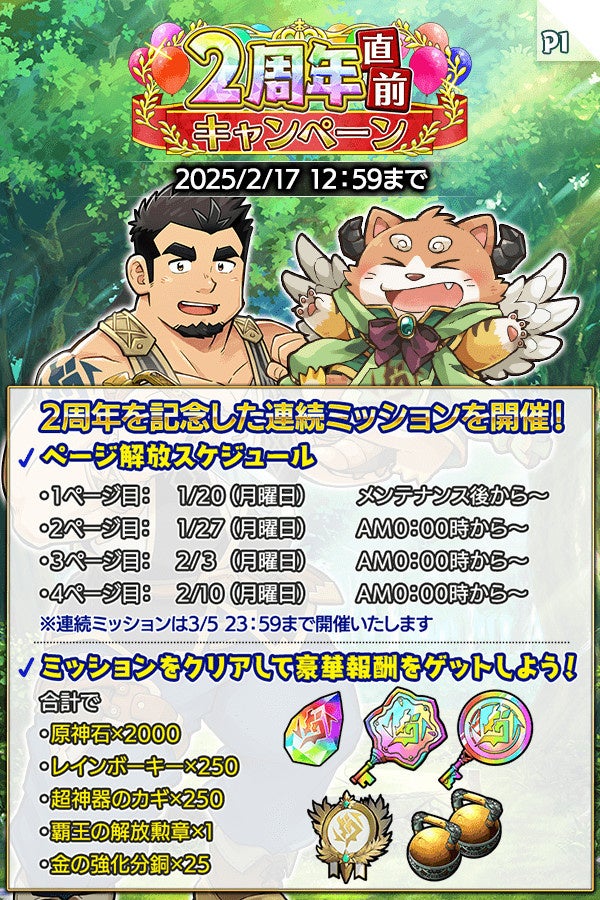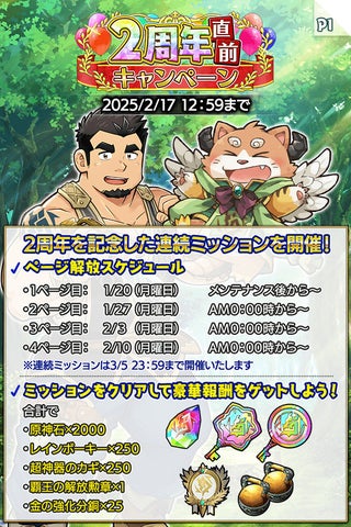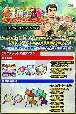 - 2周年直前キャンペーンとして、豪華報酬が手に入る様々なイベントを実施