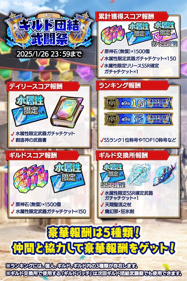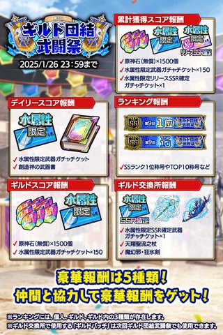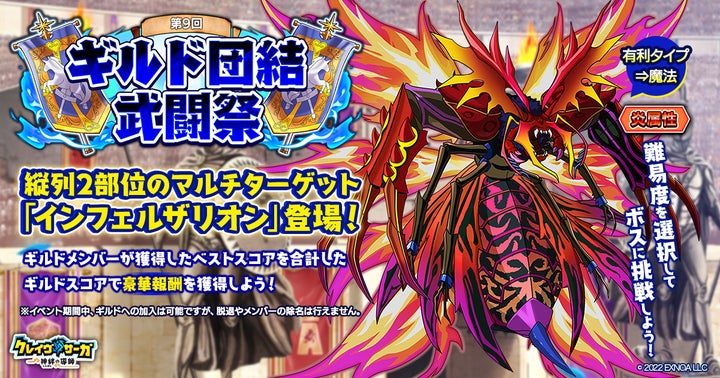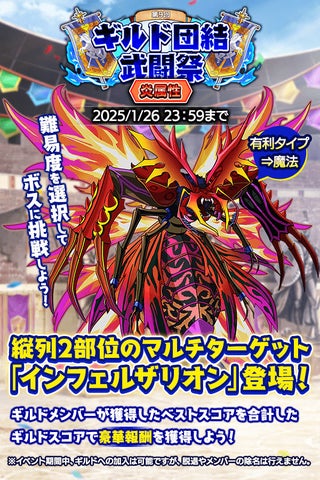 - ギルドメンバーと協力してボス「インフェルザリオン」に挑戦する「ギルド団結武闘祭」開催