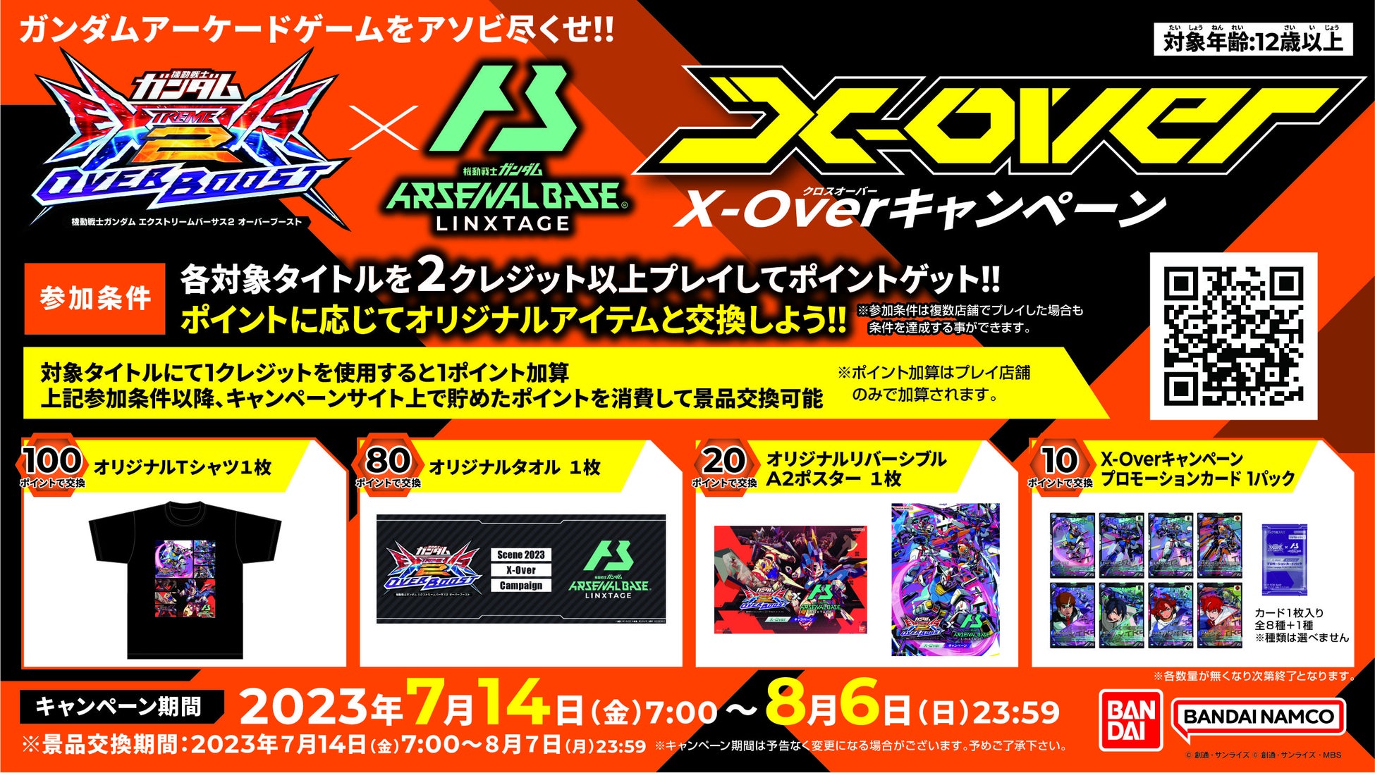 2023年7月14日から、株式会社バンダイ カード事業部は「機動戦士ガンダム エクストリームバーサス2 オーバーブースト」と「機動戦士ガンダム アーセナルベース LINXTAGE」の連動施策『X-Over(クロスオーバー)キャンペーン』を開催します。