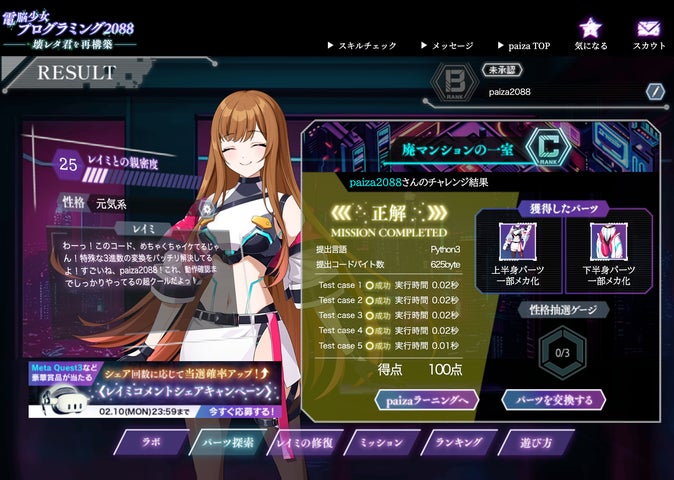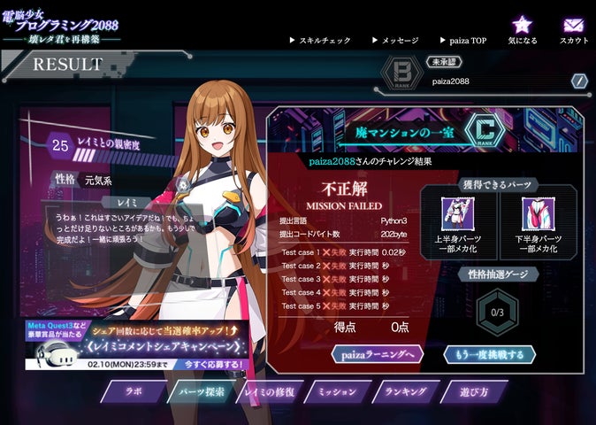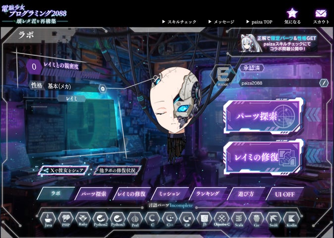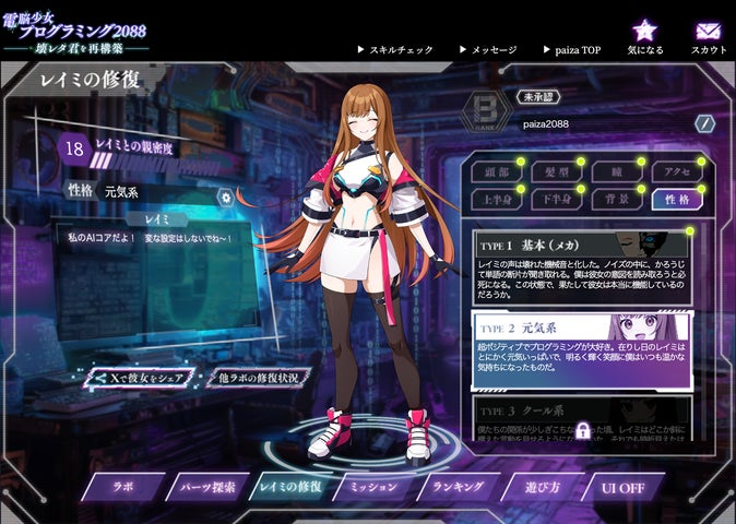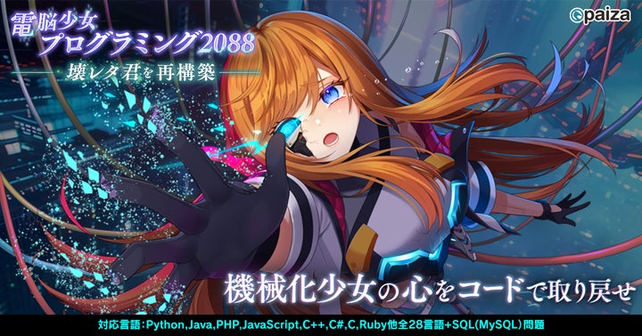paiza株式会社は、生成AIを活用した新感覚プログラミングゲーム『電脳少女プログラミング2088-壊レタ君を再構築-』を無料公開しました。