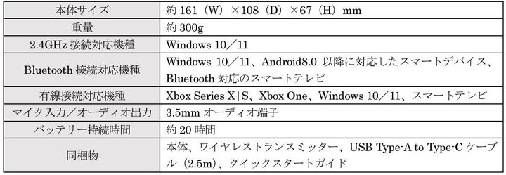 ホールエフェクト搭載スティックによる高精度な操作性、低遅延の2.4GHzワイヤレス接続とBluetooth接続の両対応、最大20時間のバッテリー駆動時間など、ゲーマーにとって魅力的な機能が満載です。