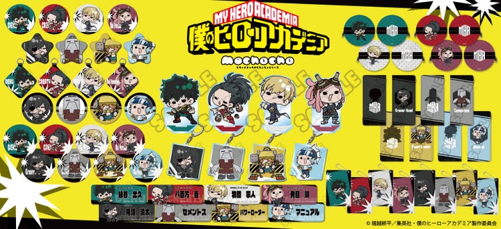 販売されるのは、アニメ『僕のヒーローアカデミア』の「みんなmochocho化大作戦!」と題されたグッズで、天空の棺に集結したヒーローたちをモチーフにした丸型缶バッジ、アクリルスタンド、レザーバッジの3種類です。
