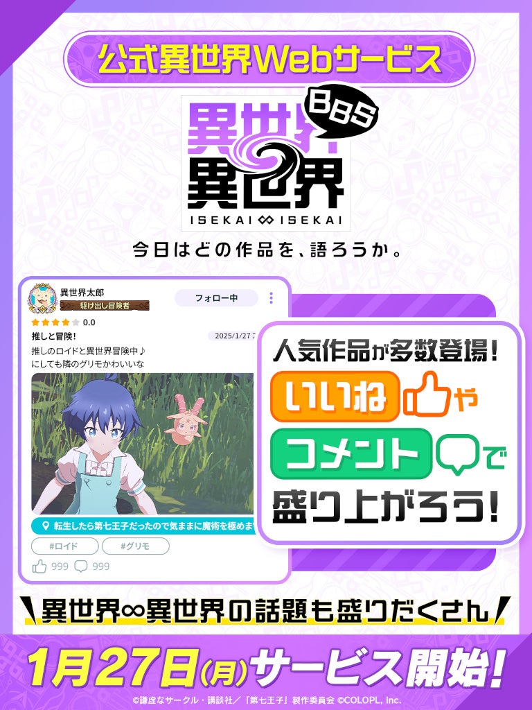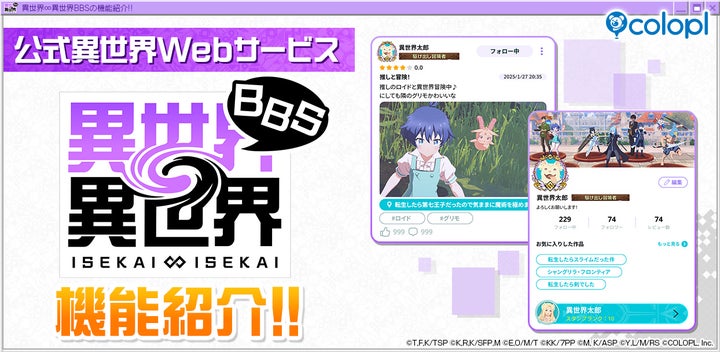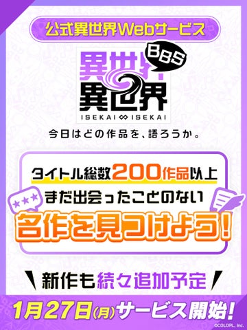 株式会社コロプラは、2025年1月27日より、公式異世界Webサービス『異世界∞異世界BBS』と新作ゲーム『異世界∞異世界』のサービス開始を予定していることを発表しました。