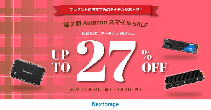 Nextorage株式会社は、2025年1月24日(金)から2月3日(月)まで、Amazonハードライン事前セールと第2回AmazonスマイルSALEの2つのセールを開催します。