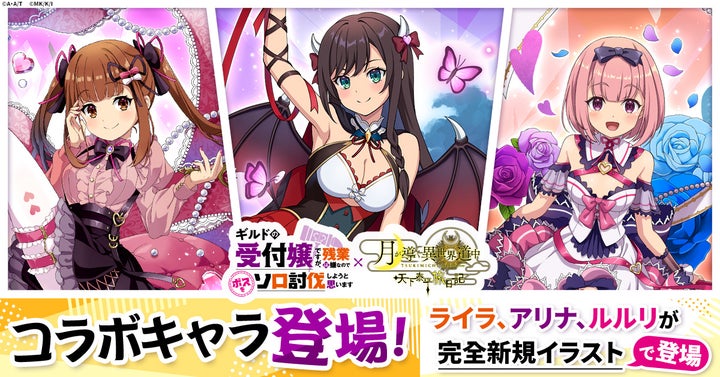 コラボでは、『ギルます』よりアリナ、ルルリ、ライラの3キャラクターが新規描き下ろしイラストスキン2種類ずつで登場します。