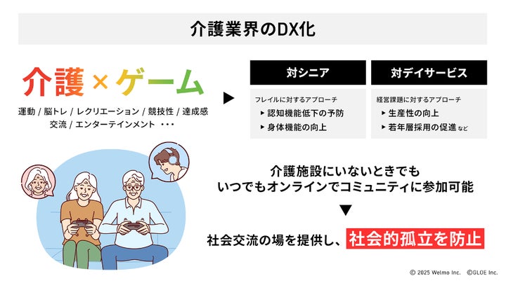 株式会社ウェルモとGLOE株式会社は、高齢者通所介護施設(デイサービス)においてゲームを活用した実証実験を2025年春から開始します。