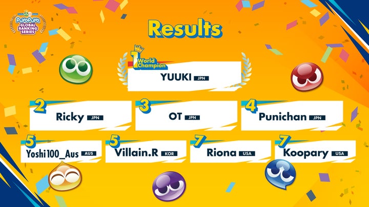 • セガ公式大会「Puyo Puyo Global Ranking Match」でゆうき選手が初代世界王者に。