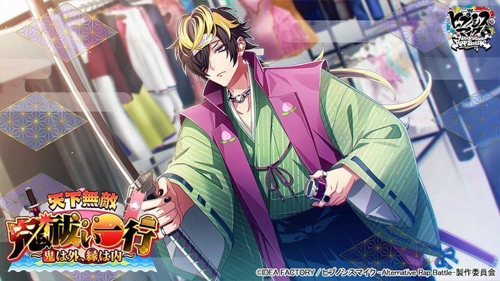 スマートフォン向けゲームアプリ『ヒプノシスマイク -Alternative Rap Battle-』で、節分をテーマにしたイベント「天下無敵鬼祓い一行~鬼は外、縁は内~」が2025年1月28日17:00~2月7日10:59に開催されました。