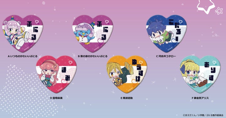 • アクリルキーホルダー、アクリルスタンド、ハート型缶バッジなど全6種