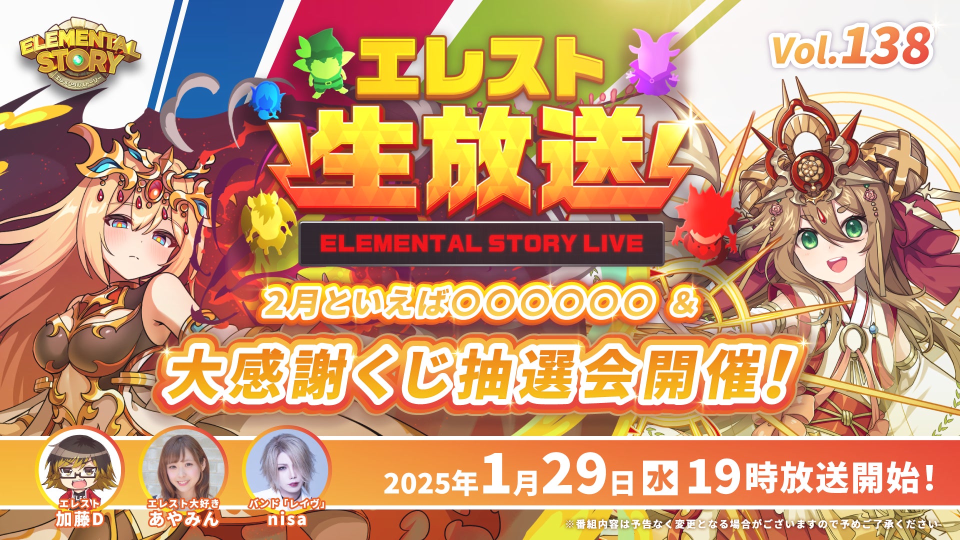 - 1月29日(水)19:00から『エレメンタルストーリー』公式生放送vol.138配信