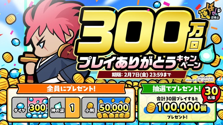 - 『運任せの召喚士』プレイ回数300万回突破記念キャンペーン開催