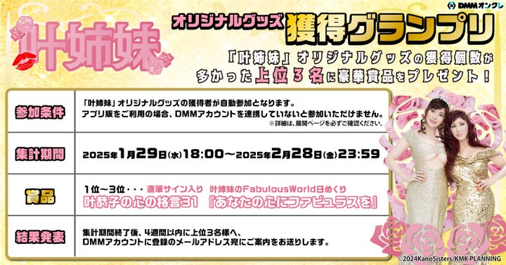 - 叶姉妹とDMMオンクレのコラボグッズが1月29日より展開開始