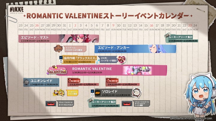 さらに、メイドカフェを舞台にした新ストーリーイベント「ROMANTIC VALENTINE」、ミニゲーム「PIRATE CAFÉ」、デイリー報酬を獲得できるログインイベント「14 Days Loginイベント – ROMANCE DRINK」も開催されます。