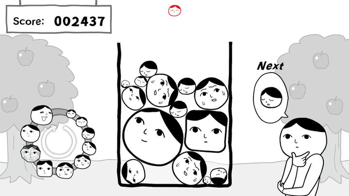 『お前ゲーム+(プラス)』は、箱に「お前」を落とすシンプルなパズルゲームで、同じサイズの「お前」をくっつけて大きな「お前」を作るのが目的です。