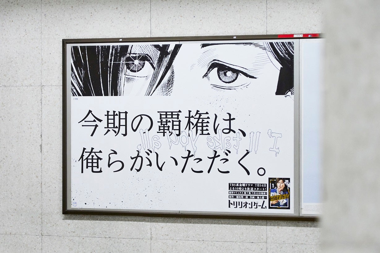 神保町駅や新宿駅では他の漫画にも宣戦布告し、赤坂駅ではドラマ化を記念して覇権を宣言します。