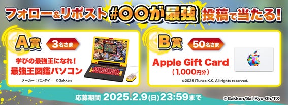 さらに、公式Xアカウントでは、「最強王図鑑パソコン」や「Apple Gift Card」が当たるキャンペーンも実施されます。