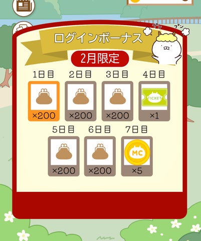 ログインボーナスでは、2月限定ステージで役立つ旬の具材や、まるコイン、2月キャンペーン券などが獲得でき、期間中は7日分のボーナスを全て獲得すると1日目から再度獲得可能です。