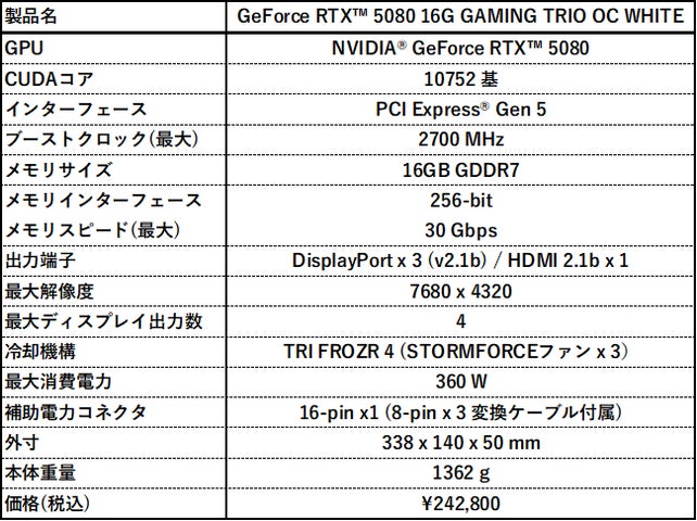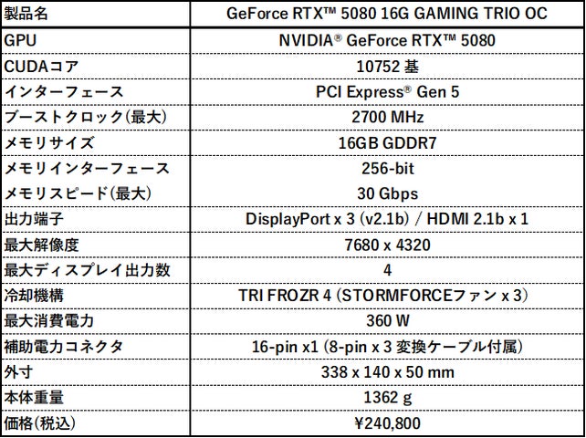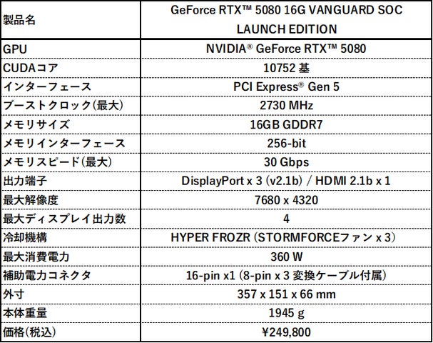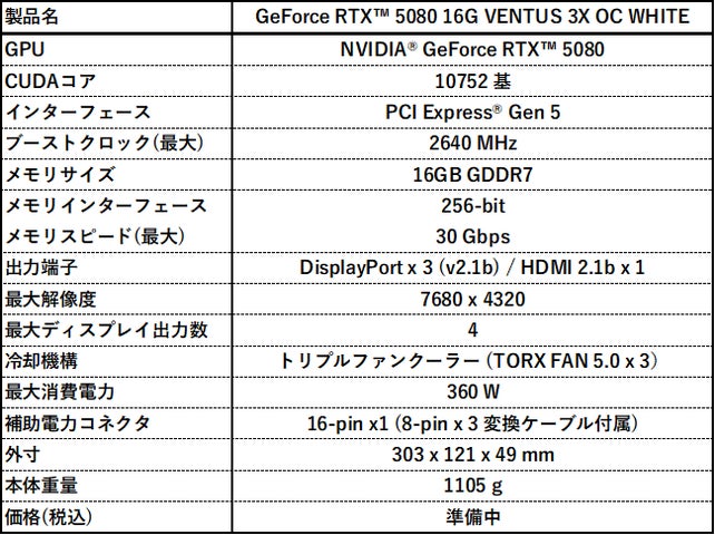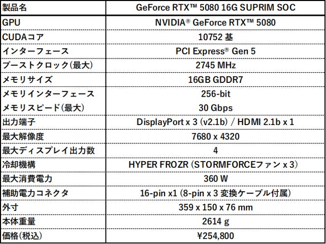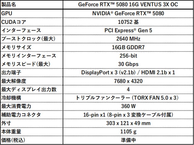 - GeForce RTX 5080搭載グラフィックスカード6製品を発売