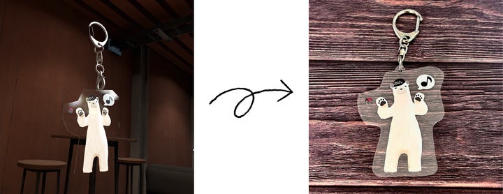VRChat内の専用ワールドでアバターの写真を撮影し、それを元にアクリルキーホルダーを制作できます。