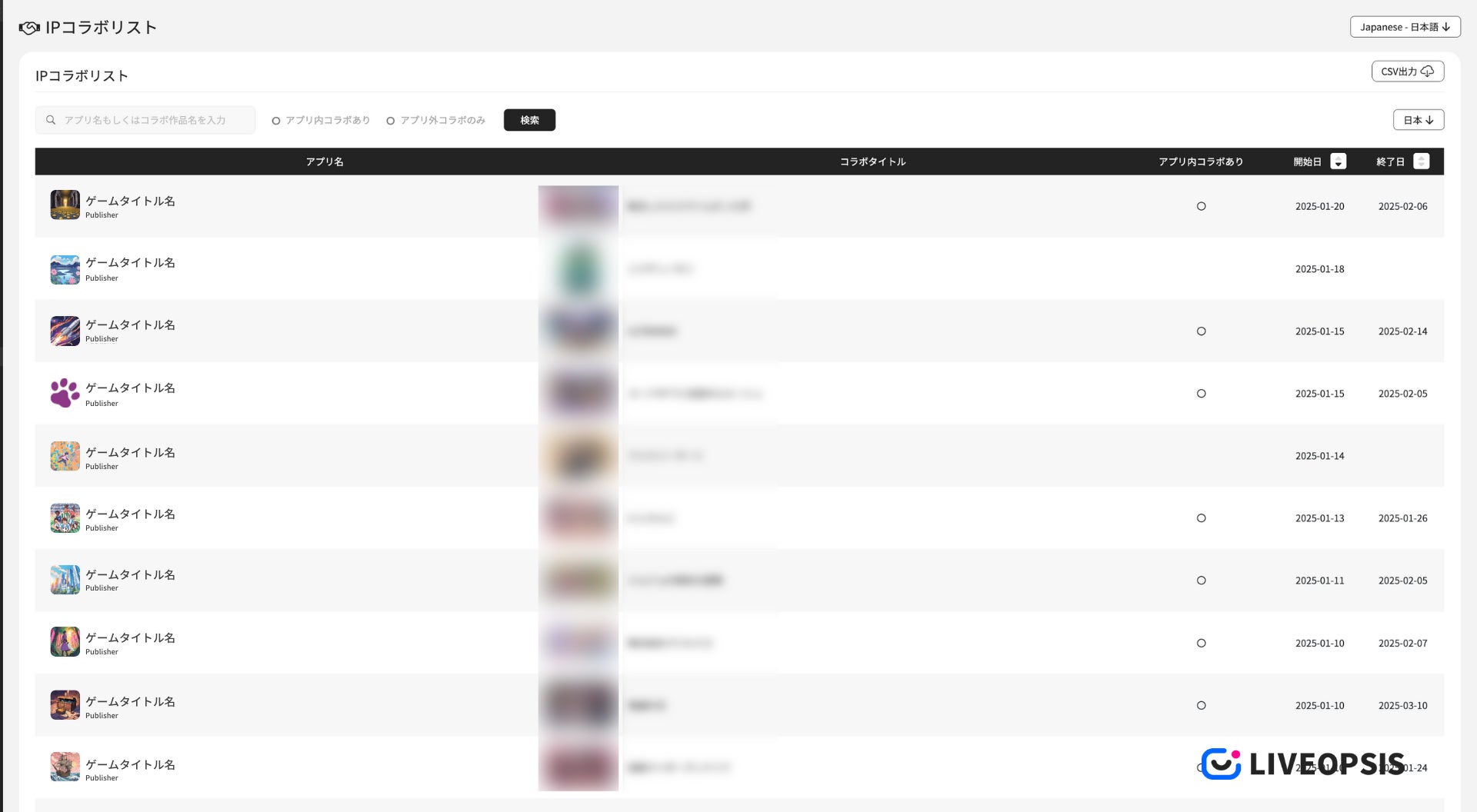 - スパイスマートのスマホゲーム分析ソリューション『LIVEOPSIS』の日本IPコラボ調査データが2,000件突破