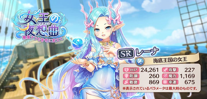 - 新アイリス『レーナ』と、彼女をフィーチャーしたイベント『女王の夜想曲 潮風すらも音色に変えて』が登場。