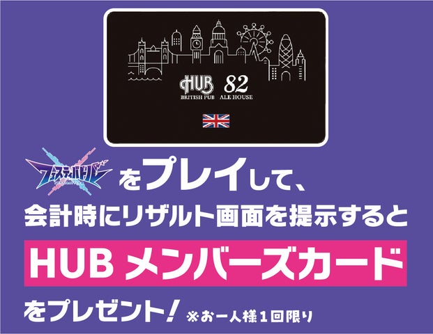 また、店内で『フェスティバトル』をプレイし、会計時にリザルト画面を提示すると、HUBメンバーズカードが無料で入手できます。