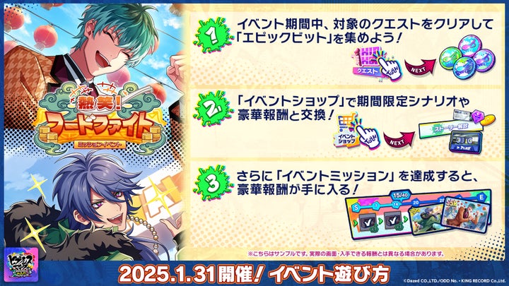 スマホゲームアプリ『ヒプノシスマイク-Dream Rap Battle-』(ヒプドリ)にて、2025年1月31日(金)より期間限定イベント「熱笑!フードファイト」が開催されます。