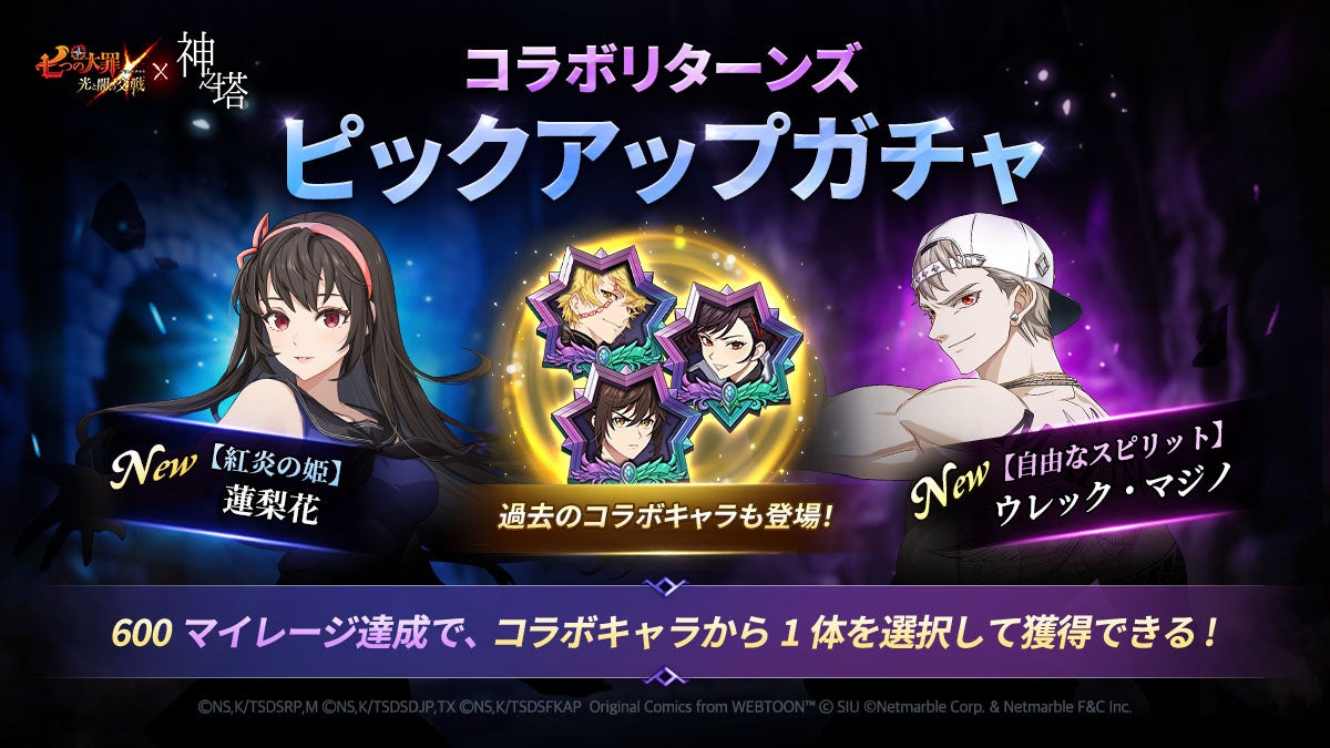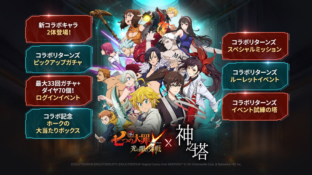 ネットマーブルは、スマホ向けRPG『七つの大罪 ~光と闇の交戦~』(グラクロ)において、『グラクロ』×『神之塔』コラボリターンズを開催。