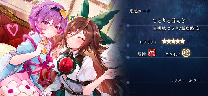 また、新キャラクター「[甘く純白な無意識]古明地こいし」と新想起カード「さとりと言えど」が登場するピックアップ願掛けも開始されました。