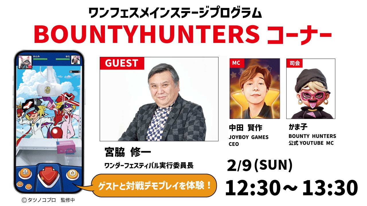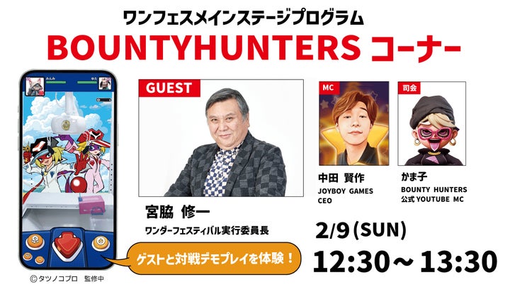 ワンフェス公式ステージでは、宮脇修一氏をゲストに招き、BOUNTY HUNTERSの対戦型オンクレのデモプレイを実施。