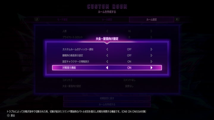 リプレイ機能やローカル大会モード、カスタムルームの対戦復元機能なども追加・改良されている。