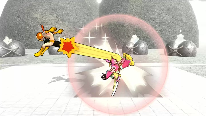 ゲームはJoy-Con™をお尻に装着して操作する、2人対戦のアクションゲームです。