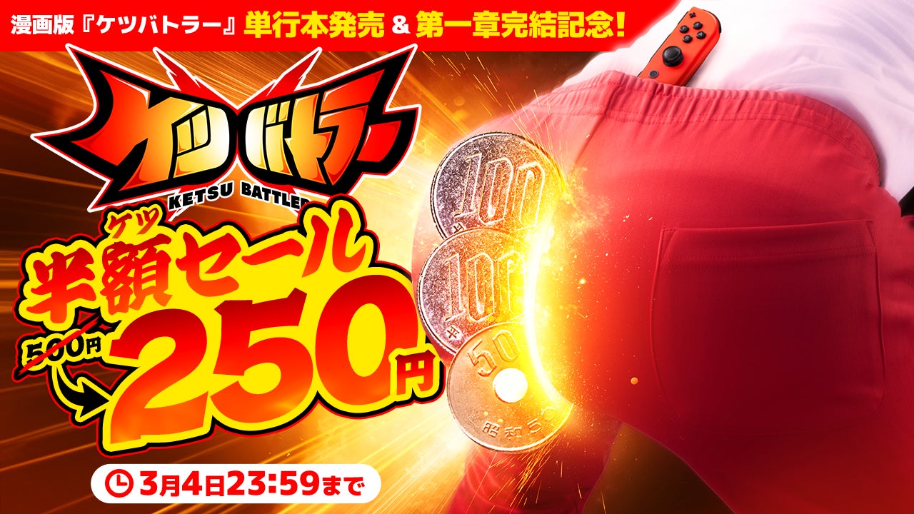 漫画版『ケツバトラー』単行本発売と、Nintendo Switch™用ゲーム『ケツバトラー』の半額セールが決定しました。