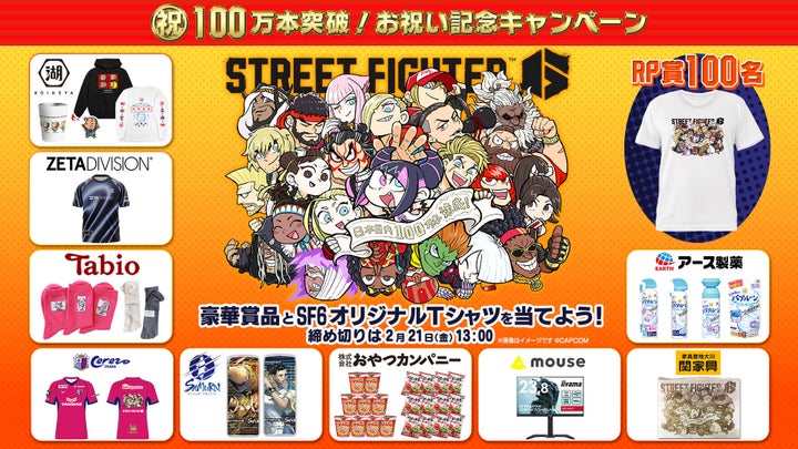 カプコンは、『ストリートファイター6』の日本国内販売本数が100万本を突破したことを発表し、これを記念したキャンペーンを開催します。