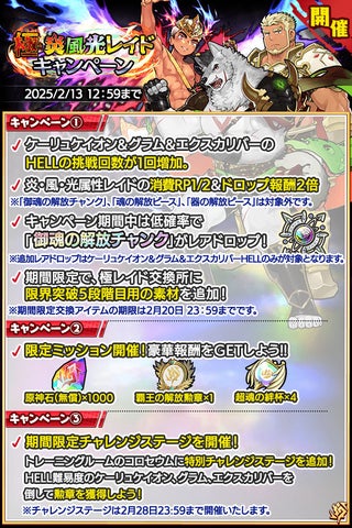 - 「極・炎風光レイドキャンペーン」と「仗魂鍛覇応援キャンペーン」を開催