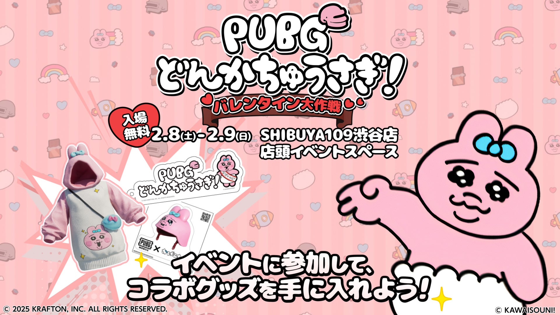 『PUBG MOBILE』と人気キャラクター『おぱんちゅうさぎ』が初のコラボレーションイベント『PUBG どんかちゅうさぎ!バレンタイン大作戦』が、2025年2月8日(土)・9日(日)にSHIBUYA109渋谷店で開催されます。