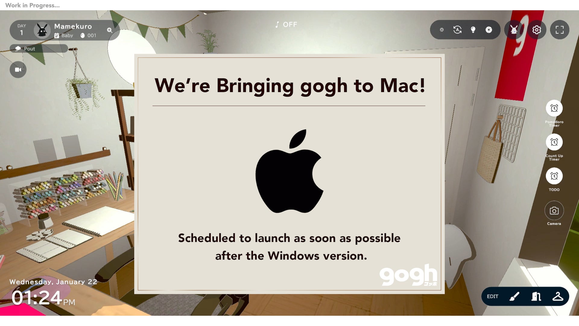 - アバター×作業集中PCゲーム『gogh: Focus with Your Avatar』の開発プレビュー動画公開