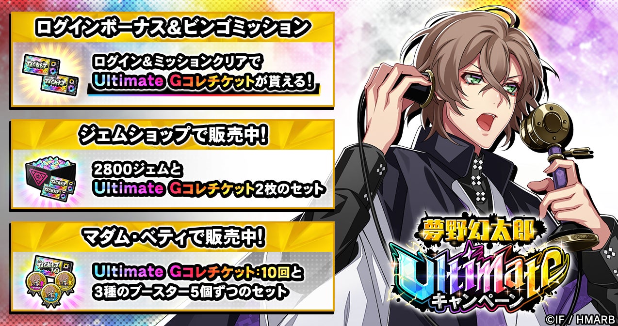 さらに、山田二郎の誕生日イベントや夢野幻太郎Ultimateキャンペーン、SUDDEN SCRATCH!!~Special~、タップエフェクトGETキャンペーンなど、複数のキャンペーンも同時開催されています。