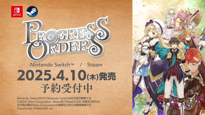ブシロードは、Nintendo Switch™とSteam®向けファンタジーRPG『PROGRESS ORDERS』(プログレスオーダーズ)の第2弾PVを2月7日に公開しました。