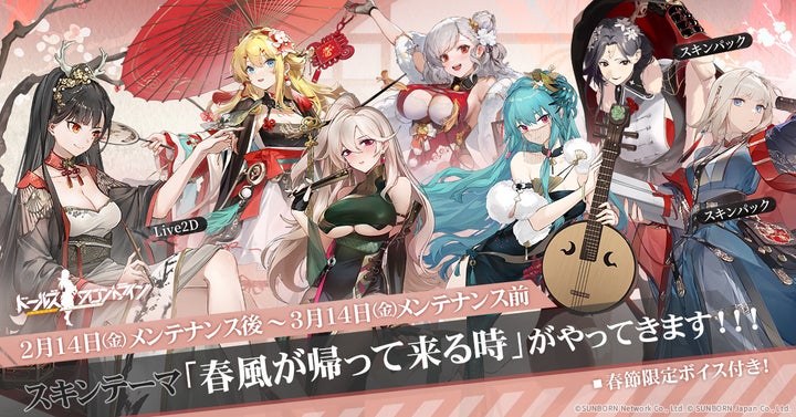 2月14日メンテナンス後から3月14日メンテナンス前まで、新スキンテーマ『春風が帰って来る時』が追加され、春節限定ボイスも楽しめます。