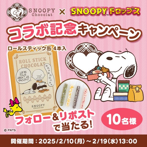 さらに、同期間中に「SNOOPY Chocolat ロールスティック缶」が抽選で10名に当たるキャンペーンも実施されます。