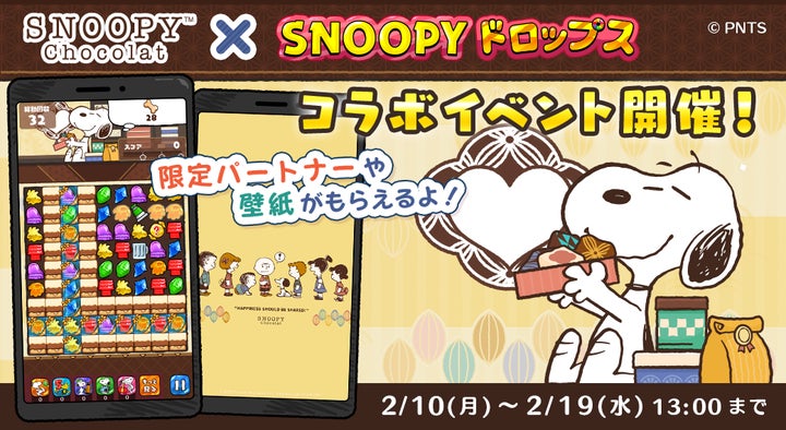 パズルゲーム『スヌーピードロップス』で、チョコレートブランド「SNOOPY Chocolat」とのコラボイベント第2弾が2025年2月10日~2月19日まで開催されます。