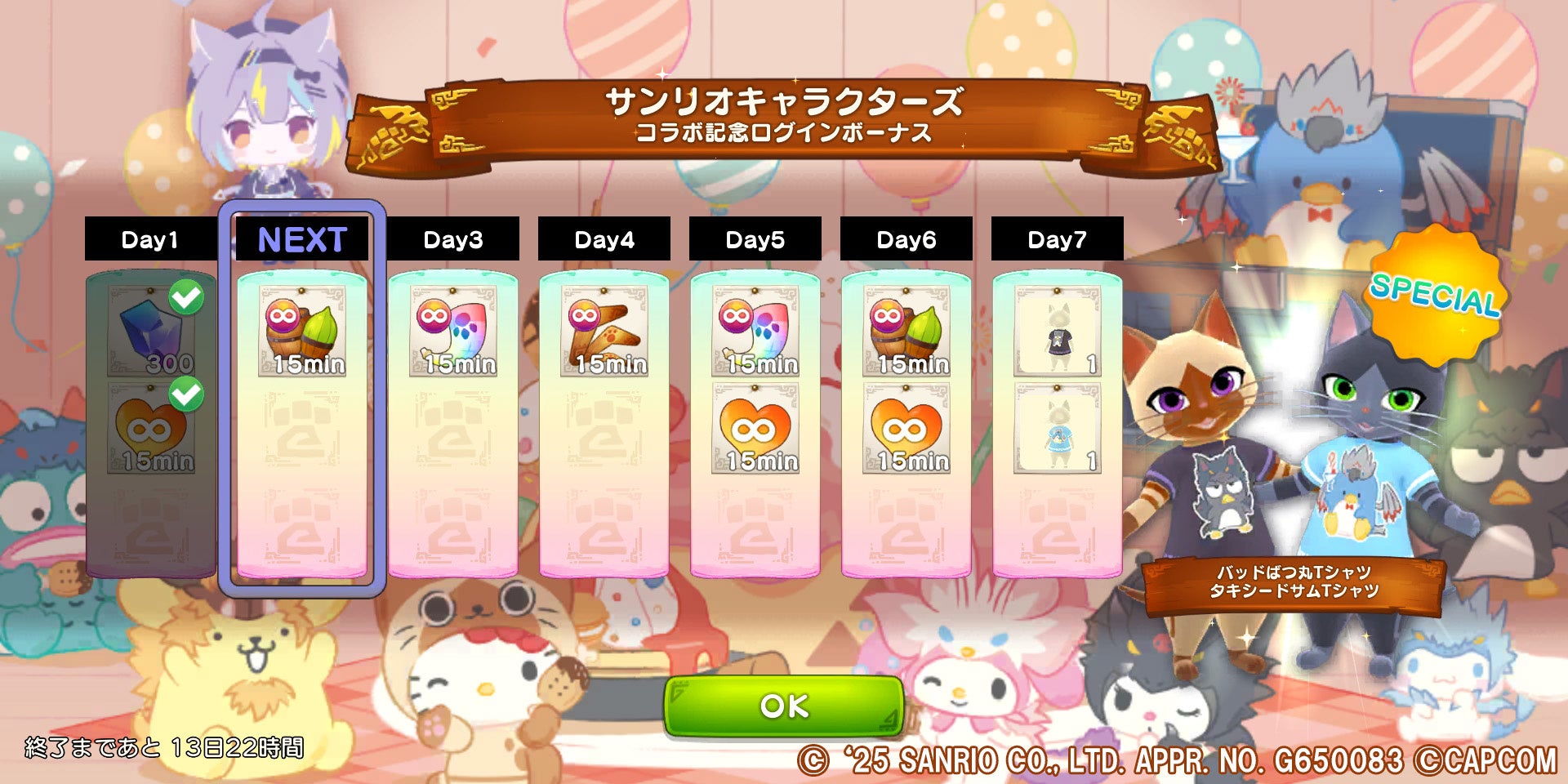 • 2月6日~22日、2週連続でサンリオキャラクターズコラボ記念ログインボーナス配布(サンリオキャラクターデザインのTシャツ)。