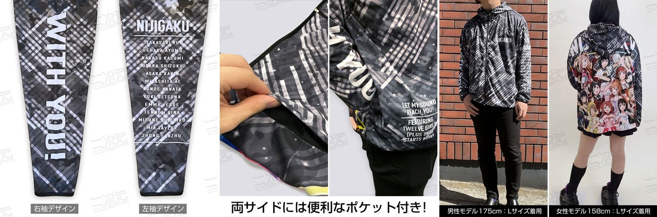 初回生産限定の「フルグラフィックドライパーカー」は、ニジガクメンバーを一身に背負えるデザインで、2023年7月上旬に発売予定。