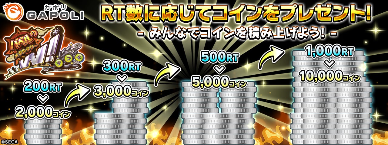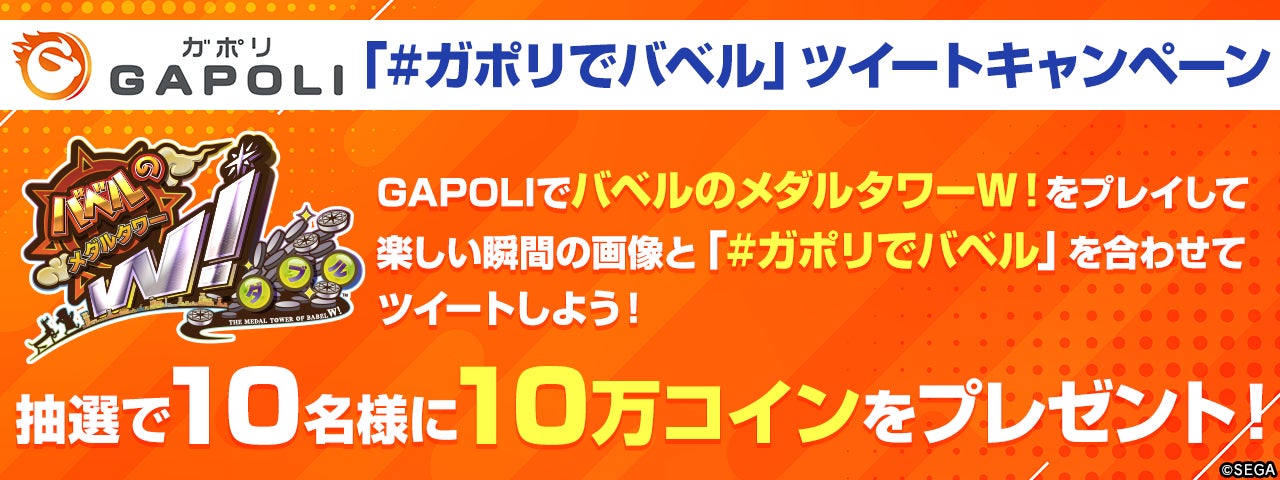 株式会社サミーネットワークスが運営するオンラインゲームセンター『GAPOLI(ガポリ)』は、2023年7月11日(火)から株式会社セガの「バベルのメダルタワーW!」を提供します。